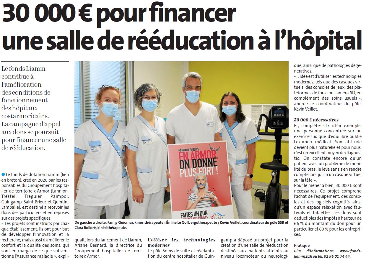 Le pôle Soins de Suite et Réadaptation de l’hôpital de Guingamp est porteur de l’un des deux projets de l’établissement sélectionnés par le fonds de dotation.