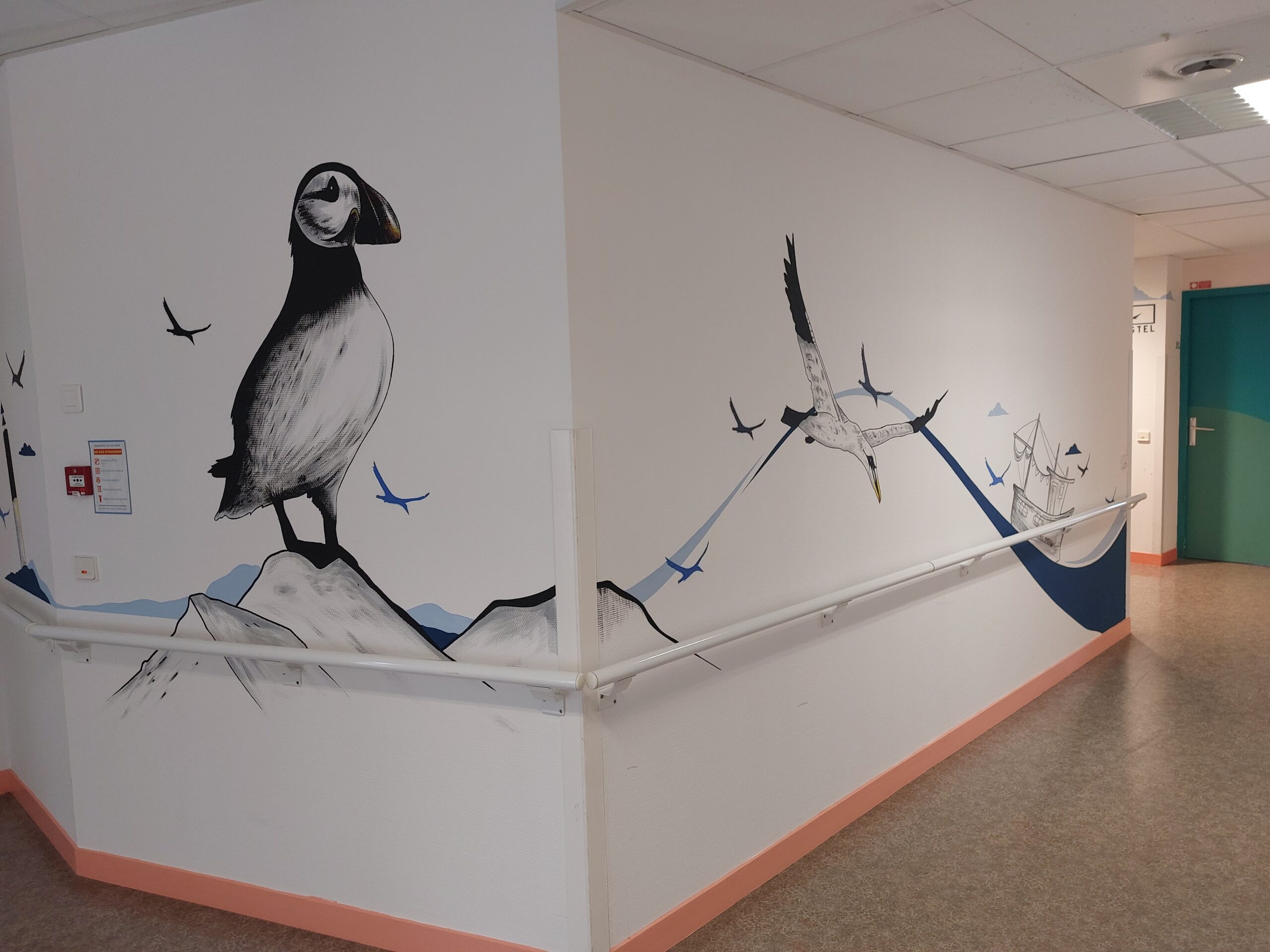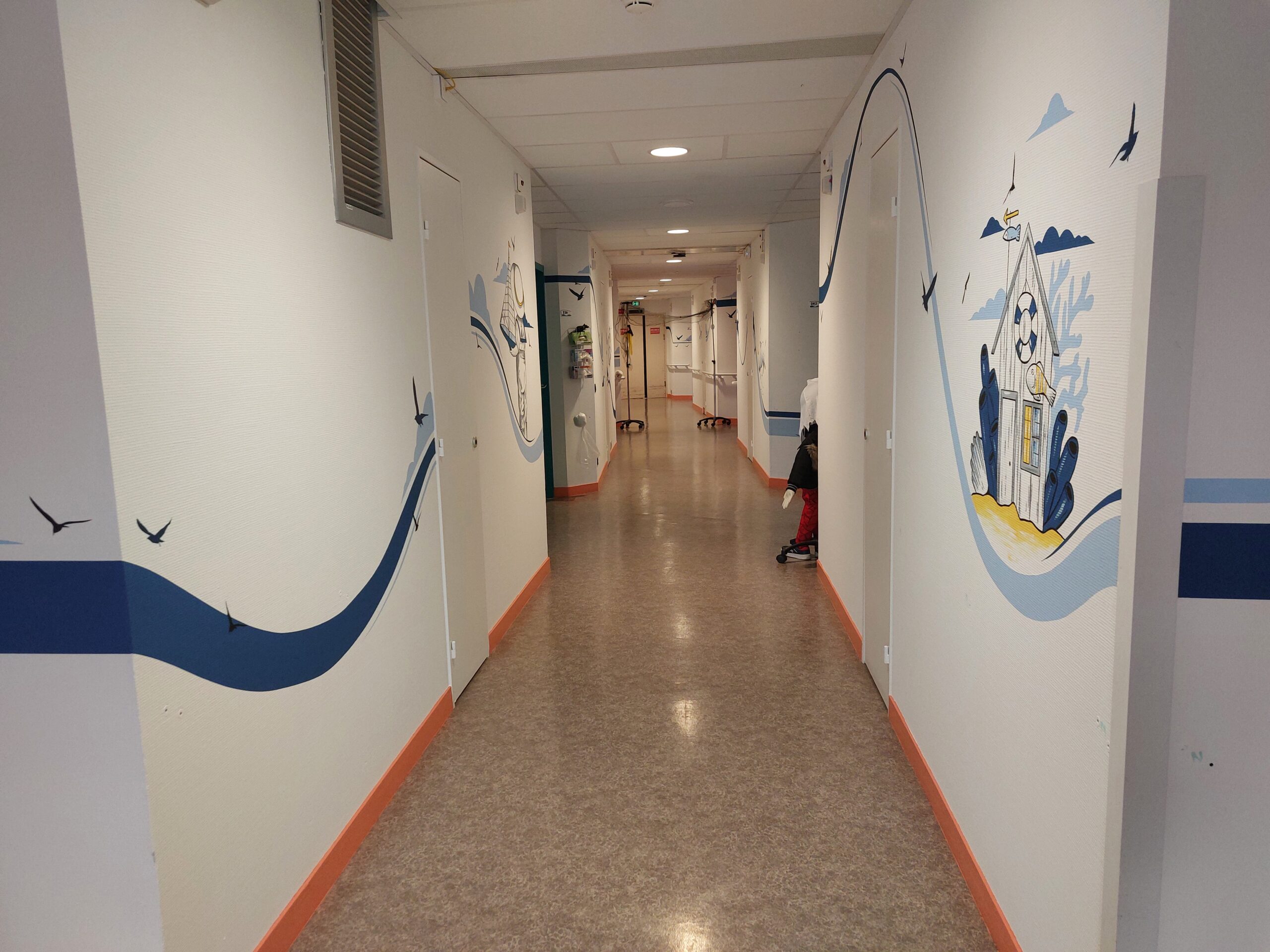 Ces fresques ludiques et rassurantes visent à améliorer le confort des enfants et adolescents et créent des interactions entre le corps médical et les jeunes patients. Il s’agit d’un moyen simple et concret pour alléger l’atmosphère et apaiser les jeunes patients qui peuvent être ainsi distraits pendant les soins.