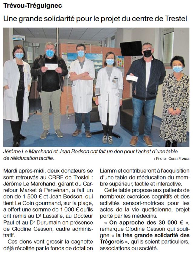 Les commerçant locaux s’engagent en faveur du projet de table de rééducation tactile pour le centre de Trestel avec un don de 2 5000 €.